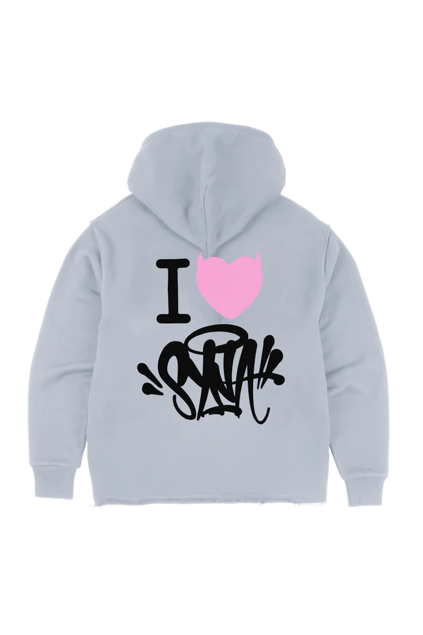 Express your passion for streetwear culture with the standout I Heart Syna Hoodie by Synaworld in grey, designed for bold expression and all-day comfort. Featuring the iconic “I Heart Syna” graphic, this hoodie is a must-have for fans of Central Cee and modern urban fashion. Its premium fabric and relaxed streetwear silhouette make it ideal for layering or making a statement.